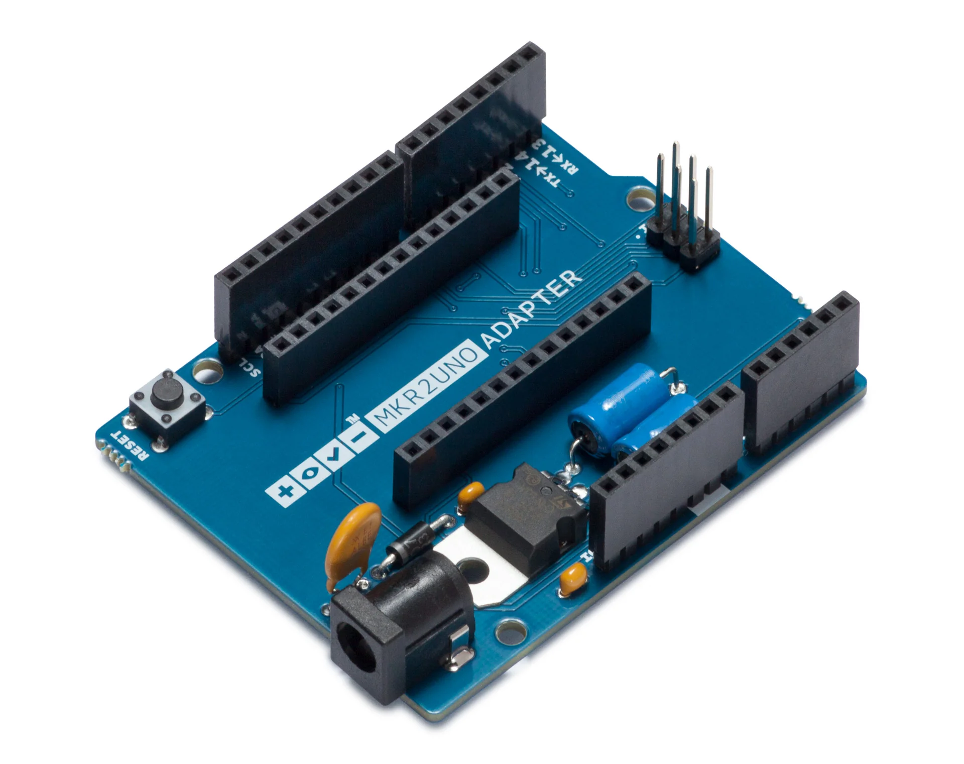 The MKR2UNO Adapter allows you to turn your Arduino UNO form factor based project into a MKR based one without too much effort! You can so upgrade your project with a powerful board with integrated LiPo battery charger.